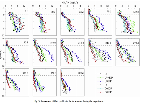 測量指標:孔隙水銨態氮垂直剖面濃度、銨態氮擴散通量。
