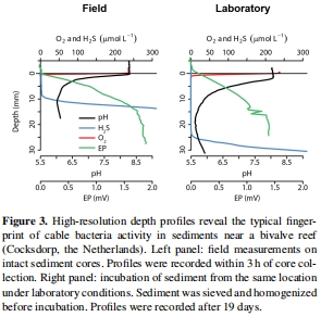 環(huán)境控制因素:電纜細菌的分布主要受硫化物可用性(由有機質(zhì)輸入驅(qū)動)和氧氣供應控制;生物擾動會抑制但其非完全排除電纜細菌,它們可在擾動間歇期快速生長。