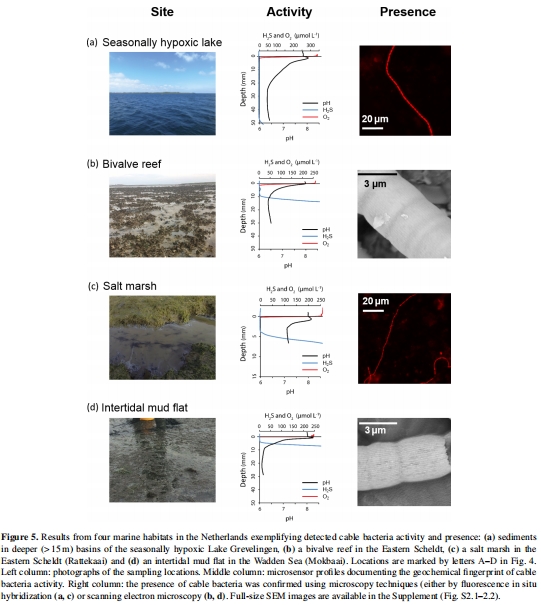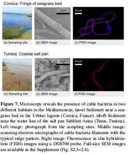 數(shù)據(jù)來源:Figure 5(荷蘭多種棲息地的顯微鏡圖像),F(xiàn)igure 7(地中海站點電纜細菌的SEM和FISH圖)。