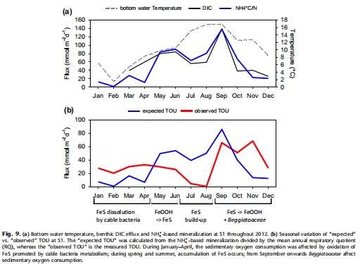 闡明驅動機制:探究控制沉積物耗氧季節性的關鍵驅動因素,包括底層水化學(溫度、氧氣濃度)、有機質輸入以及底棲生物(特別是電纜細菌)活動的相對重要性。