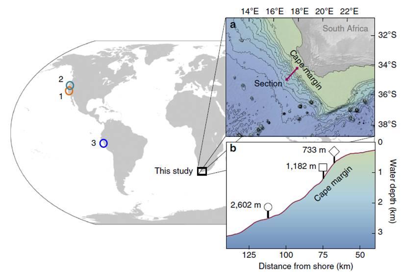 海洋環境中鐵的輸入是可追蹤的和量化,這樣便于了解他們是如何影響氣候環境的。大陸邊緣的沉積物中化學還原態的鐵為海洋提供了大量溶解通量,化學還原態的鐵同位素比地殼組成分還輕,因此可以與從其他來源的海水中區分開來,例如風塵作用帶來的,然而海水中測試存在的較重的穩定性同位素鐵導致了關于另一種從大陸邊緣的溶解性來源的還原性鐵的提議。本論文研究了從南非的半干旱海洋邊緣被動構造中孔隙水的獲取的鐵同位素數據與主動結構和無氧大陸邊緣區域中的溶解鐵相比情況,并分析了該區域中的溶解鐵的體積,并進一步探索地質和水文氣候因素對于可能進入海洋鐵的數量和鐵的同位素組成的影響。