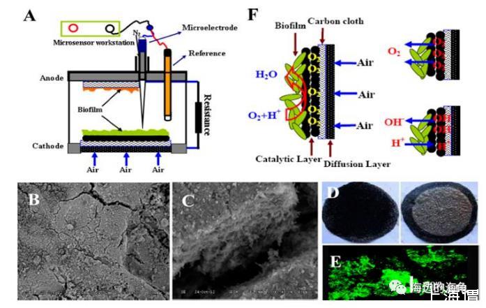 論文3、對(duì)陰極和局部生物膜微環(huán)境的原位研究揭示了氫氧根離子和氧在微生物燃料電池中的轉(zhuǎn)運(yùn)作用