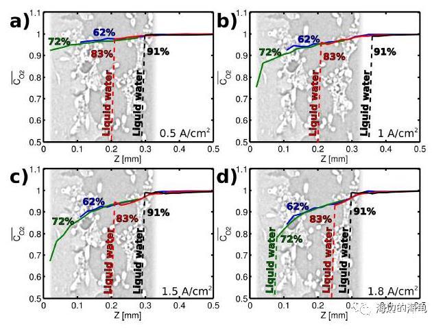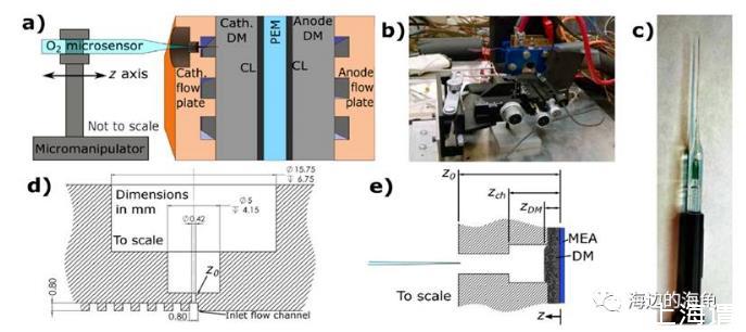 微電極的應(yīng)用:研究中使用了尖端直徑為25微米氧氣微電極(unisense)原位的測試了燃料電池陰極區(qū)域中擴(kuò)散層介質(zhì)中的氧氣的濃度,通過獲得的氧氣濃度的剖面圖分析獲得了擴(kuò)散層介質(zhì)中氧氣的運(yùn)輸情況,并相應(yīng)的計(jì)算出氧氣的傳輸系數(shù)。