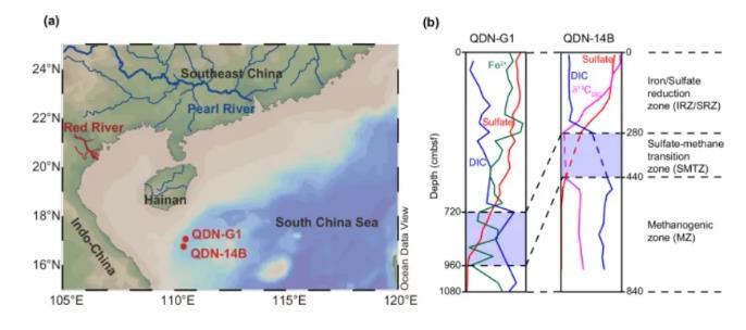 南海北部巖心分布圖及其生物地球化學分區(圖源自Nature Communications)