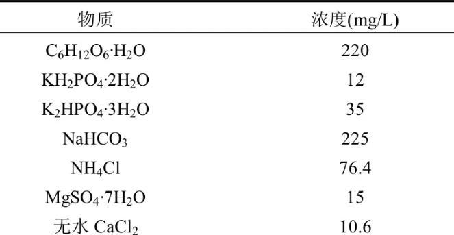 實(shí)驗(yàn)采用人工配水,配方見表1.為了更好的模擬真實(shí)廢水中的情況,配水中還加入了生物膜生長(zhǎng)所需的微量元素。
