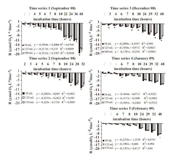 海洋中浮游生物的生產(chǎn)與呼吸平衡的準(zhǔn)確測(cè)定對(duì)于碳預(yù)算和全球變化預(yù)測(cè)非常重要。由于在不同尺度上測(cè)量這種平衡存在分歧,導(dǎo)致了對(duì)海洋營(yíng)養(yǎng)狀態(tài)的爭(zhēng)議。尤其是在寡營(yíng)養(yǎng)的開放海域中,24小時(shí)的孵化實(shí)驗(yàn)經(jīng)常顯示出凈異養(yǎng)平衡,但類似的困難也出現(xiàn)在沿海系統(tǒng)中。這些結(jié)果因?yàn)榭赡艽嬖诘拈L(zhǎng)期孵化時(shí)間和所謂的“瓶子效應(yīng)”而受到批評(píng)。為了研究孵化時(shí)間和瓶子體積對(duì)浮游生物凈代謝測(cè)量的影響,在西北伊比利亞沿海系統(tǒng)進(jìn)行了一系列時(shí)間序列實(shí)驗(yàn)。通過標(biāo)準(zhǔn)體外溶解氧濃度變化和(2)氧氣微傳感器每20秒測(cè)量一次的氧濃度下降,同時(shí)獲得了浮游生物群落呼吸率的測(cè)量結(jié)果。本研究結(jié)果反駁了24小時(shí)暗瓶孵化在125毫升體積下系統(tǒng)性偏見的說法,并強(qiáng)調(diào)了氧氣微傳感器在研究自然海洋浮游生物呼吸動(dòng)態(tài)方面的有效性。本研究結(jié)果對(duì)支持使用unisense氧氣微呼吸系統(tǒng)作為測(cè)量沿海海洋生態(tài)系統(tǒng)中浮游生物DCR的準(zhǔn)確工具,并表明它們是評(píng)估呼吸率線性的可行選項(xiàng)。對(duì)于改進(jìn)海洋生態(tài)系統(tǒng)中浮游生物呼吸作用的測(cè)量方法和理解其在全球碳循環(huán)中的作用具有重要意義。
