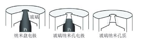 圖3納米盤電極、玻璃納米孔電極、玻璃納米孔膜示意圖