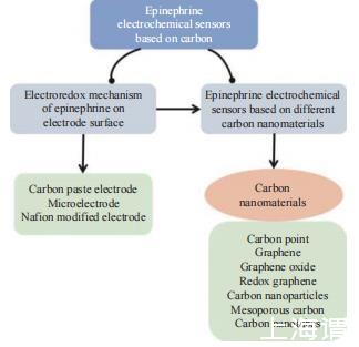 腎上腺素(AD)作為一種神經遞質在人體內扮演重要角色,其含量的高低直接影響人體身體健康,因此對AD進行快速檢測具有重要的實際意義。其檢測方法中電化學方法具有靈敏度高、檢測速度快、操作簡便的優點,因而構建性能優異的腎上腺素電化學傳感器成為研究熱點。為提高傳感器的電化學性能,碳納米材料被采納作為修飾傳感器的新型材料而廣泛應用,取得了檢測限低、靈敏度高并有希望應用于臨床檢測的巨大進步。本文從碳點、石墨烯、碳納米顆粒等碳納米材料出發,分析AD在電極表面的電氧化還原機制,對近年來基于碳納米材料的腎上腺素電化學傳感器制備方法及檢測結果進行分類統計,并對今后的檢測提出展望,以期獲得更有效的腎上腺素電化學傳感器。