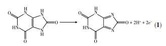 使用Cu2O/Cu‐VG微電極以DPV法定量檢測了尿酸。考慮到生物液體的pH值對峰電流的影響,最先評估了pH 6.0~8.0范圍的尿酸響應能力。如圖6a~6e所示,隨著尿酸濃度的提高,氧化峰電流隨之提高,表明Cu2O/Cu‐VG微電極在該pH范圍內均能定量響應尿酸。此外,尿酸的峰電位隨pH的增加而負向偏移,而且pH與氧化峰電位之間存在線性關系,對應的線性回歸方程為Ep=0.764-0.070pH。該斜率0.070 V近似于理論值0.059 V,表明在電極反應轉移的質子和電子的數目相同(圖6f)。在該Cu2O/Cu‐VG微電極上尿酸的可能電化學