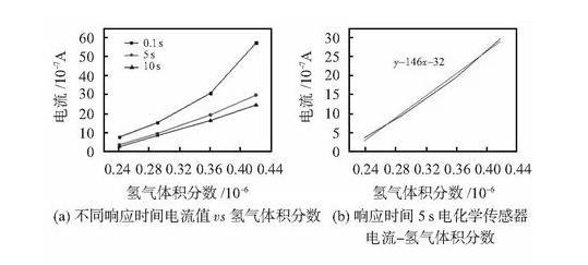 2)傳感器對(0.1~0.8)×10-6體積分數的富氫水具有良好的傳感性能,電化學傳感器電流與氫氣體積分數呈正比例線性關系,其響應時間低于5 s。