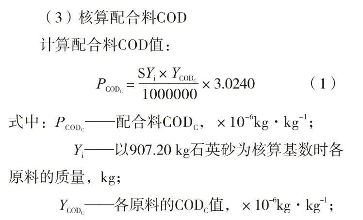 配合料COD是Redox值的核算基礎,與配合料中的還原劑有著等效的作用影響著配合料還原勢,因此在進行Redox值核算前需先對COD進行計算。