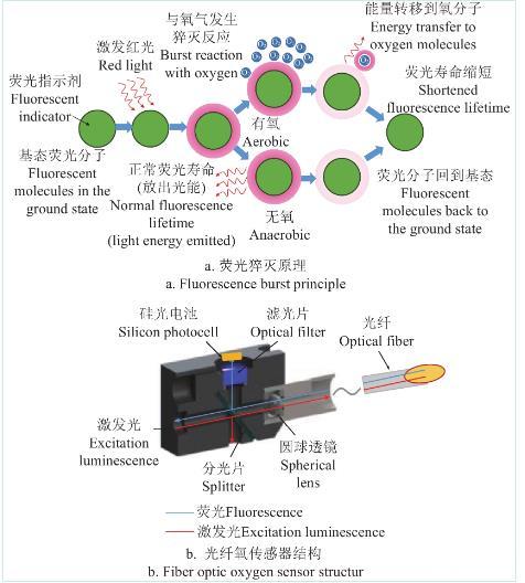 圖2熒光猝滅原理和光纖氧傳感器結(jié)構(gòu)
