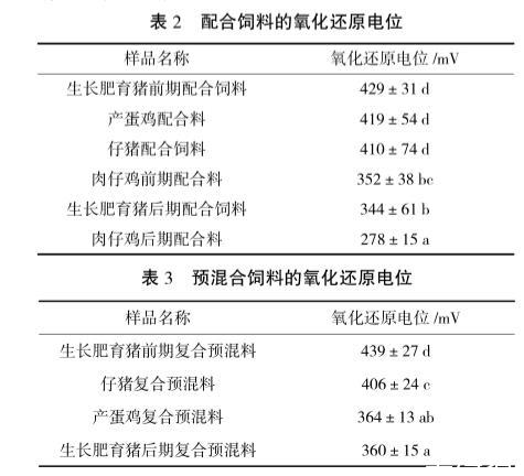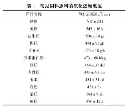 常見飼料原料的氧化還原電位見表1。