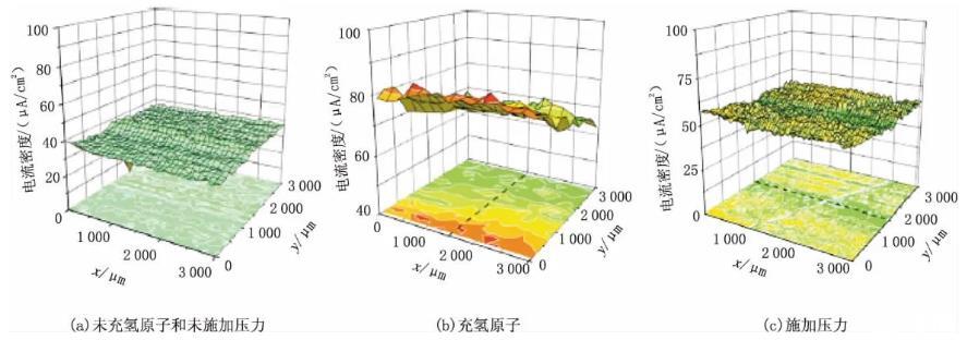 圖5 SVET電流密度測量圖(充氫+施加應力)