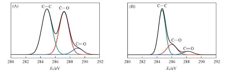 利用原子力顯微鏡(AFM)[圖1(B,C)]和掃描電子顯微鏡(SEM)[圖1(D)]對制備的R-GO/Au復(fù)合微電極陣列的表面形貌進行了表征。可以看出,利用雙光束干涉~無掩模光刻技術(shù)制備的周期性R-GO/Au復(fù)合微電極陣列的形貌均一,周期性良好。制備的R-GO/Au復(fù)合微電極陣列周期為2μm.從局部放大掃描的AFM圖[圖1(C)]中可以看出,在凸起的微結(jié)構(gòu)表面存在一些寬度約為幾十納米的褶皺,這些褶皺結(jié)構(gòu)是由于R-GO片狀結(jié)構(gòu)的堆疊以及邊緣的卷曲造成的。圖1(E)給出了微結(jié)構(gòu)陣列的高度輪廓圖。可以看出,微結(jié)構(gòu)高度約為110 nm.以上結(jié)果證明采用雙光束干涉~無掩模光刻技術(shù)可以有效地制備周期性R-GO/Au復(fù)合微電極陣列,并且通過改變?nèi)肷涔鈯A角可以制備不同周期的R-GO/Au復(fù)合微電極陣列。