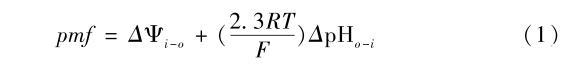 其中i和o代表類囊體內(nèi)腔和外周基質(zhì),ΔΨ和ΔpH為電勢差和pH值差,R、T和F有其通常的物理意義。