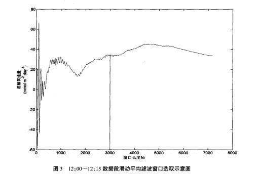 圖3 12:00~12:15數(shù)據(jù)段滑動平均濾波窗口選取示意圖