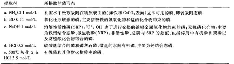 實驗結束后,利用微電極測量系統(丹麥Unisense公司)對不同培養條件下的沉積物~水界面溶解氧、H2S以及pH值進行微尺度剖面測定。O2的穿刺步進設為100μm,測量及響應時間設為16s;H2S以及pH值穿刺步進設為300μm,測量及響應時間設為20s.測量結束后,將沉積物柱芯按照0——1、1——2、2——3cm、……進行分層取樣,離心獲得孔隙水,測定孔隙水中的溶解態活性磷(SRP)濃度以及沉積物中磷的賦存形態。孔隙水SRP濃度采用鉬銻抗分光光度法(GB 11893-1989)測定,沉積物磷賦存形態采用Hupffer等發展建立的化學連續提取法進行測定(表1)。