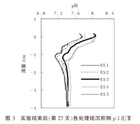 其中組合擾動下河蜆的出現進一步增大了沉積物的pH主要可從以下四方面來做解釋:首先,結合圖2,ES4組OPD要大于ES1組和ES2組,有研究表明溶解氧有利于氧化有機物中的有機酸和氧化能吸附氫氧根的陰陽離子,使得pH增大,自然OPD的增大有利于pH的增加。