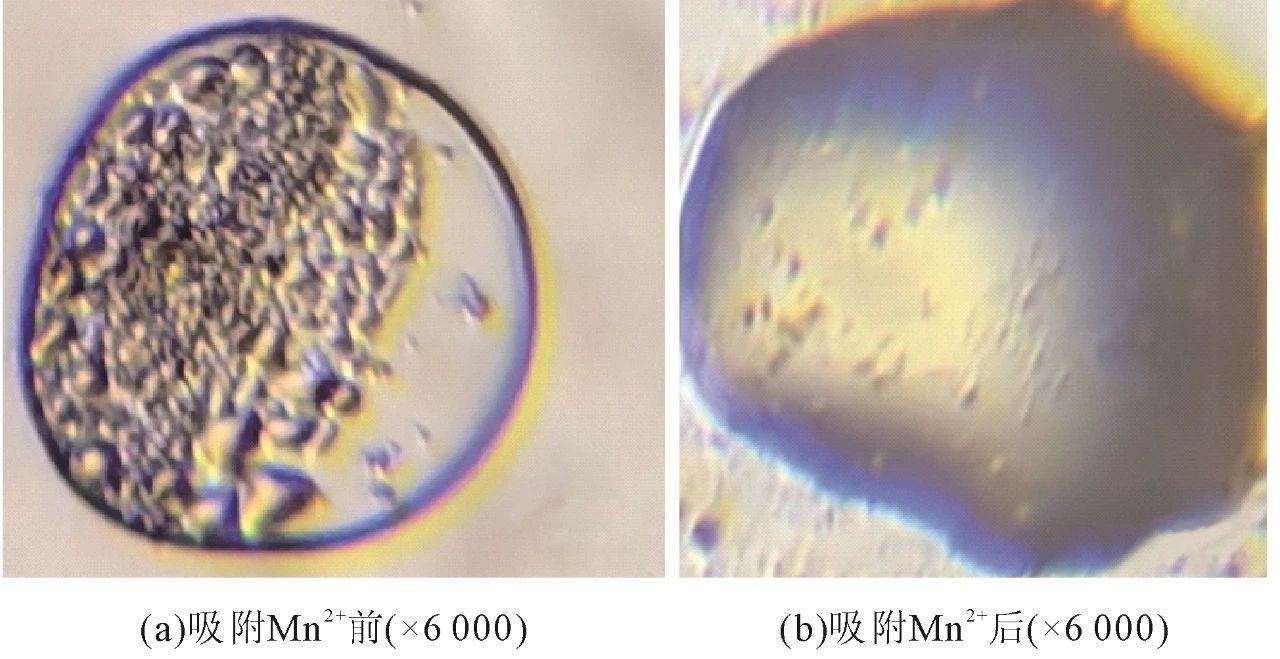 圖6原位生成的MnO2在吸附Mn2+離子前后的光學(xué)顯微鏡形貌圖