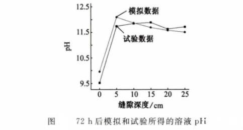 根據(jù)以往的模擬和試驗結(jié)果,由于溶液保持電中性,Na+向縫隙內(nèi)部遷移,同時向縫隙外部擴(kuò)散,Na+濃度與OH-濃度近似相等,這與本模型的模擬結(jié)果基本一致。