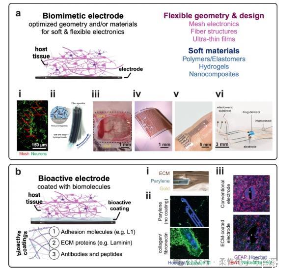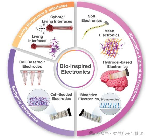 摘要神經(jīng)接口技術(shù)正通過仿生策略革新生物電子界面設(shè)計,致力于提升設(shè)備與組織的兼容性與功能性。當(dāng)前研究聚焦于將柔性材料與組織工程結(jié)合,在設(shè)備表面構(gòu)建具有生物活性或含活細(xì)胞的動態(tài)界面層,以此促進(jìn)生物組織的無縫整合并解鎖細(xì)胞調(diào)控的治療潛力。本文系統(tǒng)梳理了仿生電子學(xué)領(lǐng)域的最新進(jìn)展,涵蓋三大創(chuàng)新方向:1)類組織柔性生物材料的開發(fā);2)表面生物活性功能化涂層的優(yōu)化;3)生物雜交界面(含生物組分)與全生命界面(含活體細(xì)胞)的構(gòu)建。通過厘清關(guān)鍵術(shù)語體系,重點解析了生物活性成分在縮小實驗室成果與臨床應(yīng)用鴻溝中的核心作用,為下一代可實現(xiàn)長期穩(wěn)定整合、具備生物響應(yīng)能力的智能神經(jīng)接口指明發(fā)展方向。