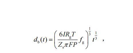 其中,db是氣泡的直徑,ρl是電解液密度,ΔPb表示氣泡內部和外部之間的壓力差抵消表面張力后的殘余壓力?;瘜W反應控制階段占據了氣泡生長過程的絕大部分,這一階段氣泡生長直徑表達為,,(12)