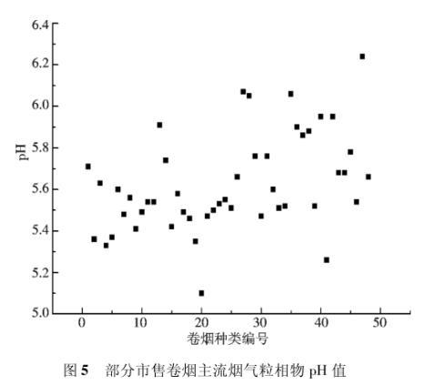 圖5部分市售卷煙主流煙氣粒相物pH值