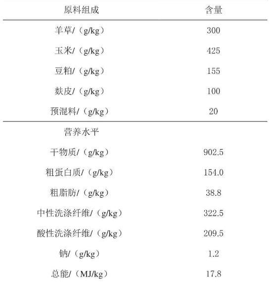 1.2生長性能和氮平衡試驗從試驗的第1~60天綿羊被單獨飼養在30個圈舍中,所有綿羊分別在早上8點和下午4點各飼喂1次,每天記錄飼喂量和剩余飼料量,每日采集樣品,測定干物質攝入量。每周單獨記錄1次體重,計算平均日增重和料重比。在60 d喂養試驗后,羊被轉移并單獨關在代謝籠里。所有綿羊在早上8點和下午4點分別飼喂1次,每日記錄飼喂量和剩余飼料量,每日采集樣品測定干物質攝入量。試驗分為7 d適應階段和4 d樣品采集階段。在樣品采集階段,每只羊采食量為900 g/kg。將每天收集的糞便混合,稱重。糞便代表性樣本保存在-20℃進行氮分析。每隔30 min記錄綿羊排尿情況。每只羊的尿液樣本通過代謝籠底部的漏斗收集,放置在無菌樣品罐中,-20℃保存。