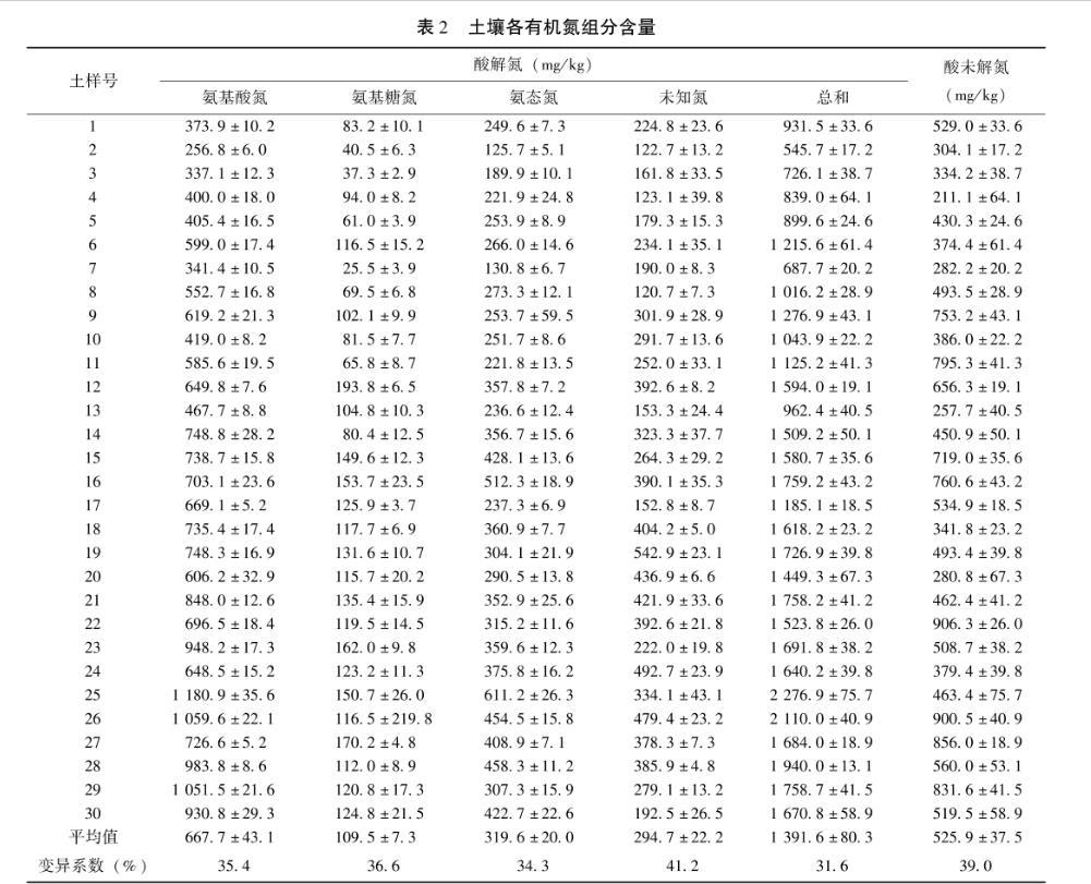 表5土壤有機氮組分與可礦化氮間的Pearson相關系數