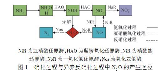 圖1硝化過程與異養反硝化過程中N2 O的產生途徑