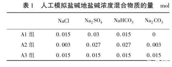 表1人工模擬鹽堿地鹽堿濃度混合物質的量mol