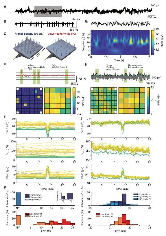 圖2.不同密度的多邊環(huán)境協(xié)定記錄的細(xì)胞外神經(jīng)元信號(hào)。
