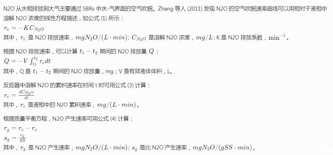 反應器接種了取自一個已穩定運行處理高強度市政廢水合成廢水超過半年的實驗室規模好氧顆粒污泥反應器中的好氧顆粒。接種后三個SBRs中的初始懸浮固體(SS)濃度為20 g/L。在開始N2O測量之前,三個反應器用COD:N比為1:0.22的合成廢水運行兩周。然后,廢水依次切換為其他兩種COD:N比為1:0.15和1:0.11的合成廢水。實驗期間SBRs中的生物質濃度為18.9±0.8 g SS/L,主要顆粒尺寸為300-2000μm,平均尺寸為710±85μm。在穩態下,除了在排水階段隨出水帶出的懸浮固體外,不從反應器中排泥;這導致污泥停留時間超過45天。