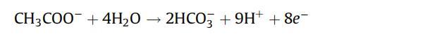 電力生產生物膜以一種獨特的方式進行呼吸,利用固體外部材料作為其新陳代謝的終端電子受體,這在生物電化學系統(BESs)中作為催化劑具有興趣,例如微生物燃料電池(MFCs)和微生物電解電池(MECs),以及海水淡化、生物修復和傳感系統[1-4]。陽極呼吸細菌(ARB)利用MFCs、MECs或其他生物電化學系統的陽極進行呼吸,最終將電子從微生物轉移到陽極。陽極生物膜的電流是由氧化反應引起的,其中發生氧化反應,底物如乙酸或其他有機物質被消耗。在這個過程中,質子釋放到陽極液中,電子轉移到陽極[5,6],如式(1)所示。
