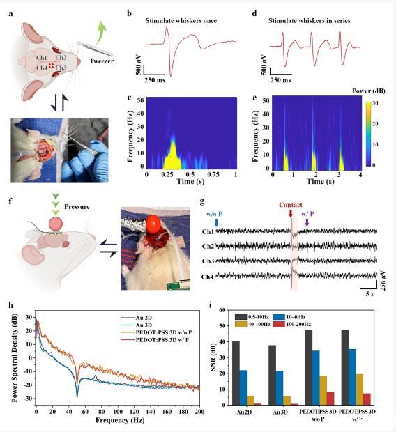 圖6.SMBE電極對胡須刺激和自外向內(nèi)壓力的在體神經(jīng)響應(yīng)