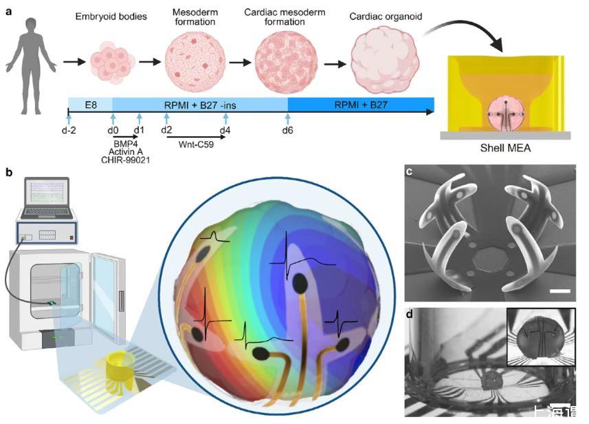 圖1. shell MEA與3D打印微孔集成用于心臟類器官封裝