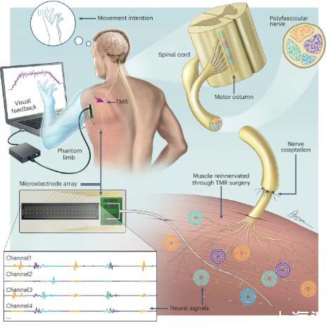 然而,傳統TMR面臨一個核心挑戰:控制上肢的神經(如正中神經、尺神經)是多功能、多束的“信息高速公路”,內含指揮手部各種精細動作的不同指令。當整條神經被轉移至一塊肌肉時,所有指令都匯聚于一點,導致肌電信號相互重疊、難以區分,限制了假肢的自由度控制。