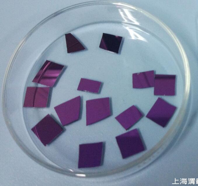 硅片(表面有300nm的SiO2氧化層,見圖3)接觸藍(lán)膠上的石墨烯,并且使用棉簽輕輕按壓石墨烯使其和硅片緊密接觸,最終使硅片上粘附一定量的石墨烯。撕開藍(lán)膠之后將硅片轉(zhuǎn)移到顯微鏡下進(jìn)行觀察和尋找單層石墨烯(見圖4)。