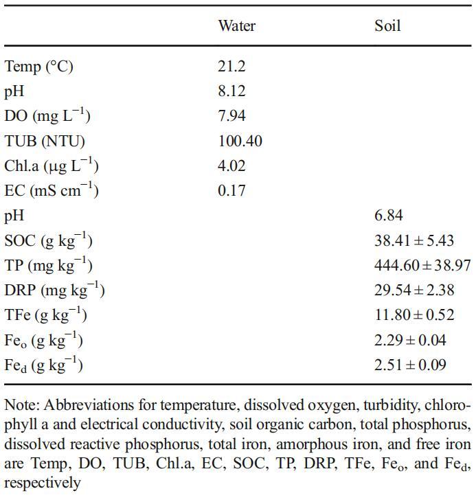 表1采樣點(diǎn)水和土壤的物理化學(xué)參數(shù)。土壤值表示為平均值±標(biāo)準(zhǔn)誤差