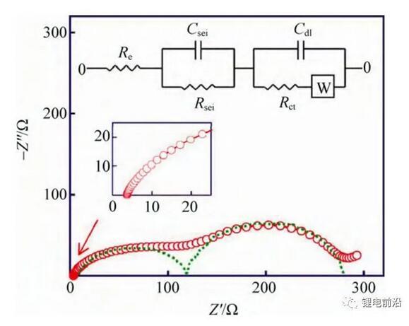 圖2嵌入化合物電極中Li+脫出和嵌入過程的典型電化學阻抗譜