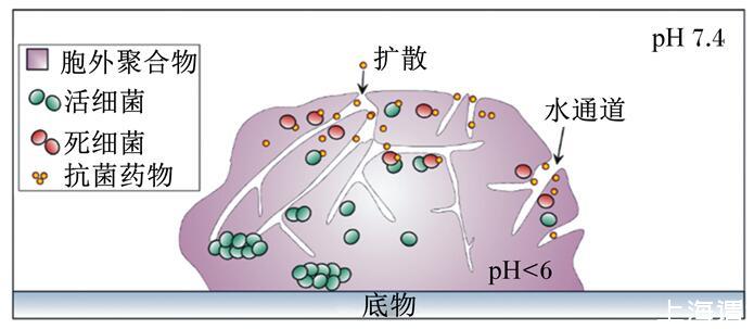 圖2生物膜中的抗菌藥物的滲透障礙