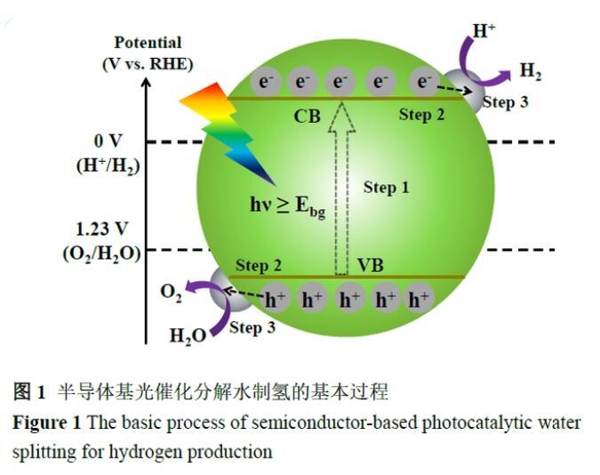 利用半導(dǎo)體光催化分解水制氫則可以在室溫下進行,其基本原理為半導(dǎo)體通過吸收太陽光實現(xiàn)電子從基態(tài)躍遷至激發(fā)態(tài)并產(chǎn)生足夠能量的導(dǎo)帶電子和價帶空穴以滿足水分解的熱力學(xué)要求。