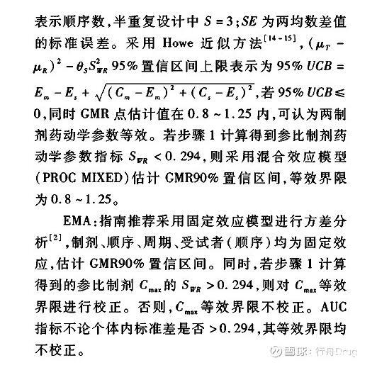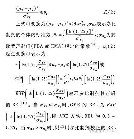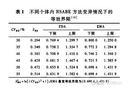 我國對于高變異藥物生物等效研究通常是通過增大樣本量來達(dá)到等效的目的。2007年國家食品藥品監(jiān)督管理總局藥品審評(píng)中心(CDE)電子刊物發(fā)表文章"關(guān)于高變異藥物生物等效性研究的考慮"提到了"比例標(biāo)化平均生物等效性"的方法[4]。2015年國家藥典委員會(huì)發(fā)布的《藥物制劑人體生物利用度和生物等效性試驗(yàn)指導(dǎo)原則》中,關(guān)于高變異藥物也可以采用重復(fù)交叉設(shè)計(jì)對藥動(dòng)學(xué)參數(shù)指標(biāo)BEL進(jìn)行放寬,Cmax的BEL最寬為69.84%~143.19%,這與EMA關(guān)于RSABE方法校正的最寬界限一致[5]。
