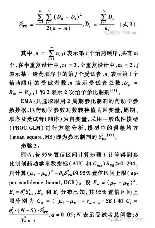 FDA:試驗(yàn)設(shè)計(jì)采用半重復(fù)和全重復(fù)交叉設(shè)計(jì),SWR計(jì)算公式為: