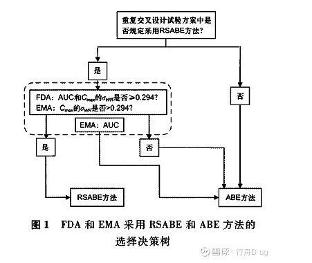 進(jìn)行生物等效性判定,即RSABE。FDA和EMA采用RSABE和ABE方法的選擇原則見圖1[10]。