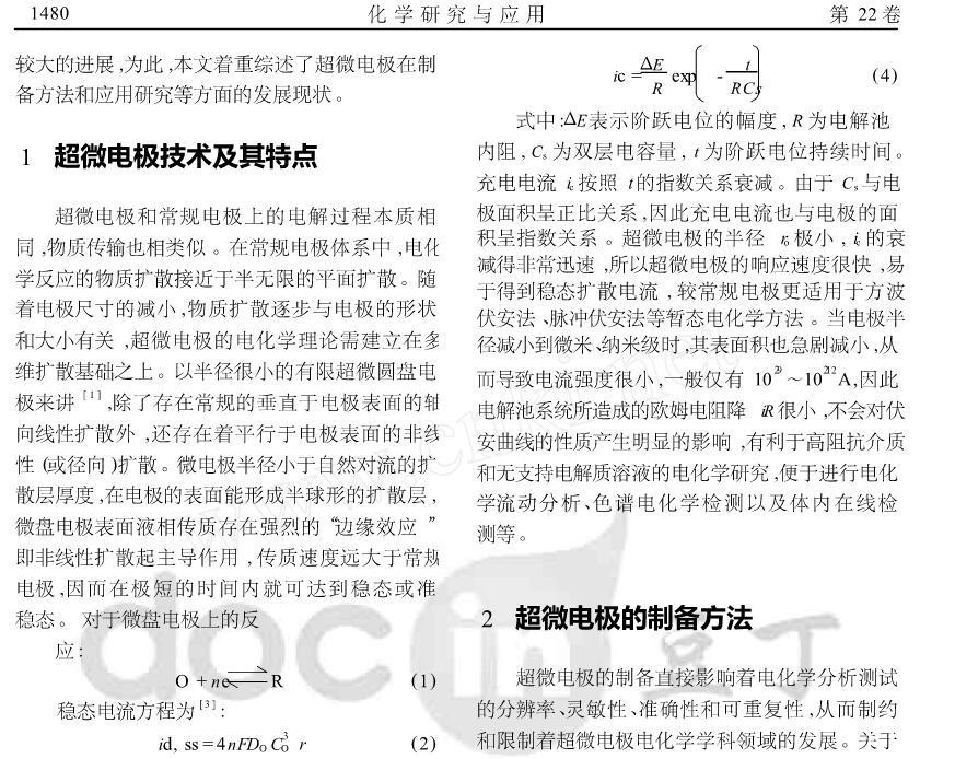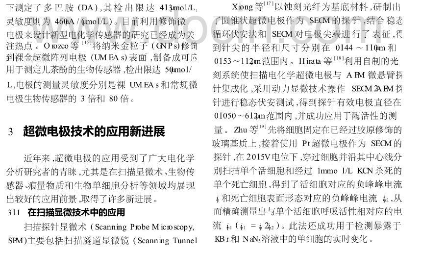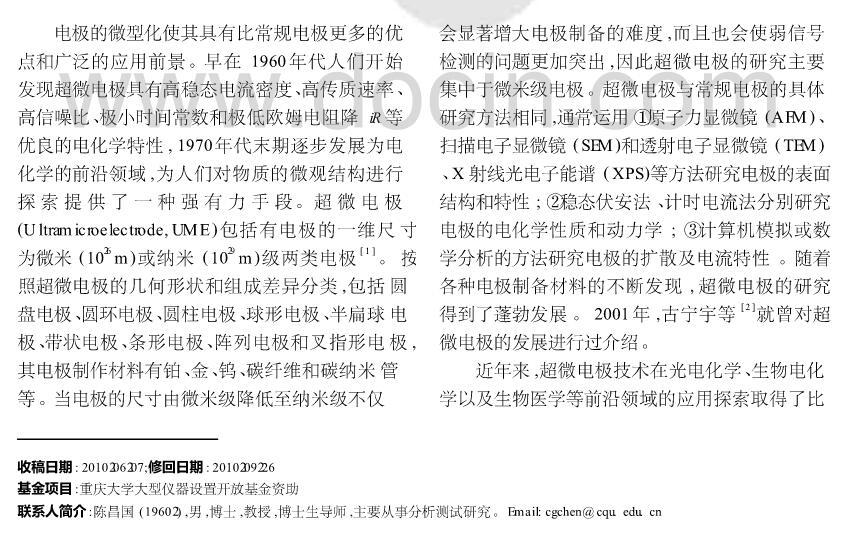 【摘要】:本文在闡述超微電極技術(shù)相關(guān)原理的基礎(chǔ)上,總結(jié)了超微電極的特點(diǎn)、類型及研究方法,綜述近十年來超微電極的制備與應(yīng)用進(jìn)展,并介紹了超微電極的發(fā)展現(xiàn)狀。
