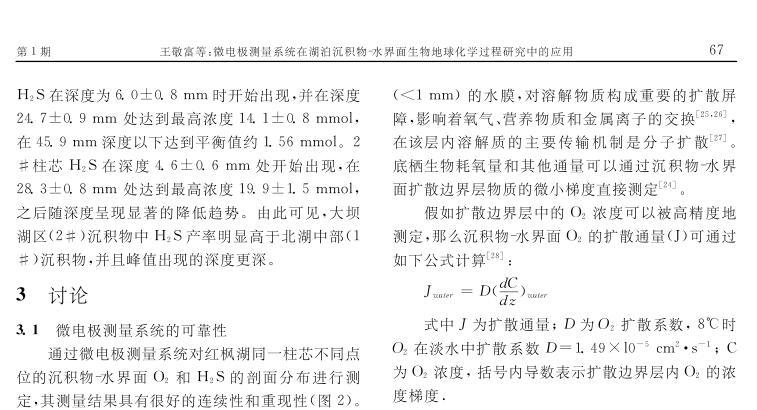 【摘要】:本文利用微電極測量系統(tǒng)對高原深水型湖泊紅楓湖沉積物-水界面O2和H2S的微剖面分布進行了高分辨率研究。
