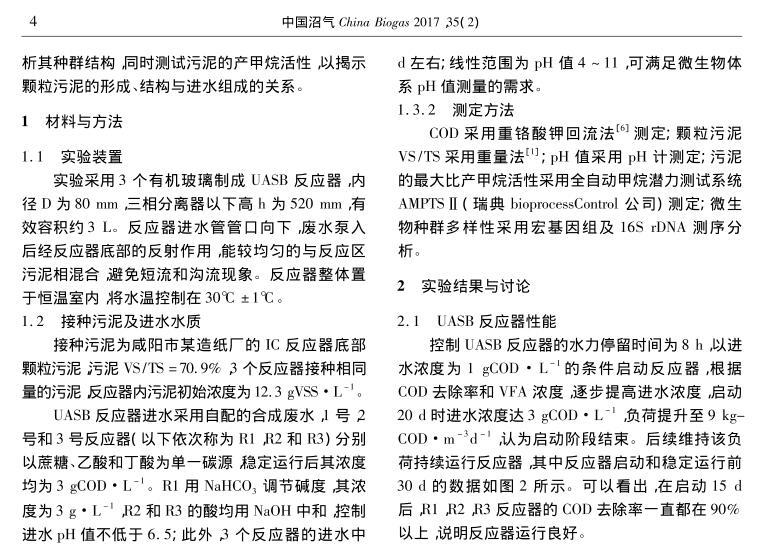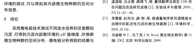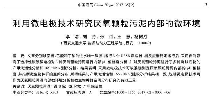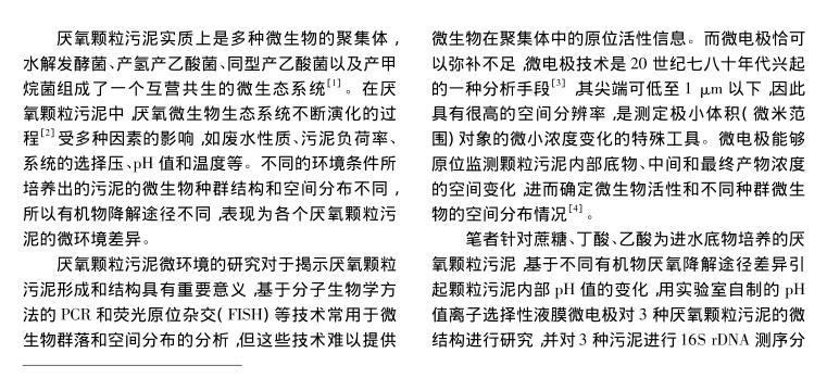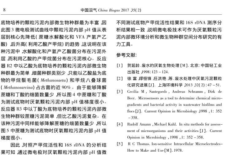 【摘要】:文章分別以蔗糖、乙酸和丁酸為進(jìn)水唯一碳源,運(yùn)行3個(gè)UASB反應(yīng)器,當(dāng)反應(yīng)器穩(wěn)定運(yùn)行后,采用自制氫離子選擇性液膜微電極對(duì)3種厭氧顆粒污泥進(jìn)行內(nèi)部pH值梯度分析,并對(duì)厭氧顆粒污泥進(jìn)行了多種測(cè)試底物的產(chǎn)甲烷活性分析和16S rDNA測(cè)序分析。結(jié)果表明,采用微電極技術(shù)可以準(zhǔn)確測(cè)定厭氧顆粒污泥內(nèi)部的pH值梯度,并推斷微生物種群的空間分布,所得結(jié)果與產(chǎn)甲烷活性和16S rDNA測(cè)序分析結(jié)果相一致,說明微電極技術(shù)可作為厭氧顆粒污泥內(nèi)部微環(huán)境分析和微生物種群空間分布研究的有力工具。