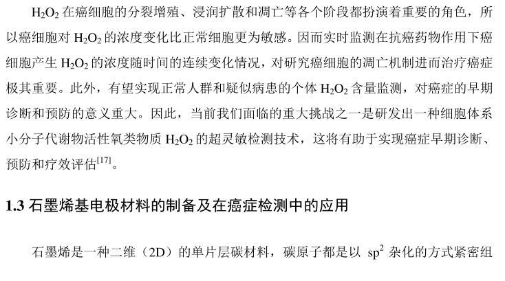 【摘要】:癌癥是當(dāng)前致死率較高的一種疾病,而癌癥的早期診斷能增加患者生還和治愈的比例。電化學(xué)分析具有靈敏度高、分析速度快、儀器簡單的優(yōu)勢,在臨床醫(yī)學(xué)領(lǐng)域得到廣泛應(yīng)用。微電極技術(shù)作為電化學(xué)分析的前沿領(lǐng)域,為人們進(jìn)行細(xì)胞水平超靈敏檢測癌癥標(biāo)記物、探索癌細(xì)胞的生理現(xiàn)象提供了強(qiáng)有力手段,對癌癥的早期檢測和相關(guān)的療效評估有著重大的意義。開發(fā)研制微電極體系的核心是尋找合適的電極材料、設(shè)計新型的電極結(jié)構(gòu)。石墨烯具有良好的生物相容性、優(yōu)異的物理性能和化學(xué)性能,并能被廣泛用于構(gòu)建各種不同結(jié)構(gòu)、形貌可控的新型多功能電極,因而在電化學(xué)生物傳感器領(lǐng)域掀起了一股研究熱潮。鑒于對癌癥標(biāo)記物超靈敏、高精確度和快速檢測的應(yīng)用需求,以及目前國內(nèi)外在電化學(xué)傳感、微電極技術(shù)和石墨烯功能材料等方面的研究進(jìn)展,我們開發(fā)了兩種基于三維多孔石墨烯修飾碳纖維的功能微電極,并構(gòu)建了可用于超靈敏檢測癌細(xì)胞釋放H_2O_2的電極系統(tǒng),開展其在癌細(xì)胞電化學(xué)檢測中的基礎(chǔ)應(yīng)用研究。